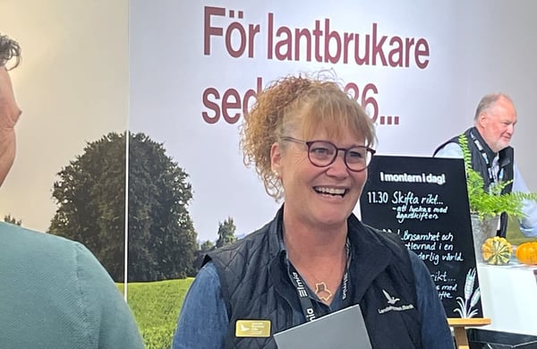 På bilden som pryder detta reportage är Jeanette exempelvis på plats på Elmia Lantbruk för att berätta om föreningen och fördelarna som det kooperativa ägandet av en egen bank för jord- och skogsbrukare i Sverige ger.