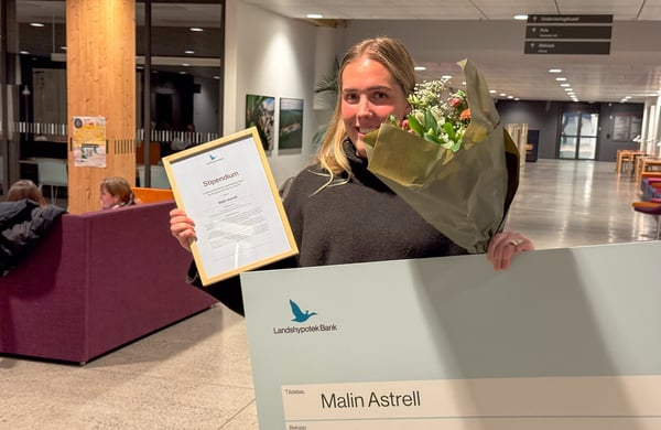 Malin Astrell från Götene är 2025 års vinnare av Landshypoteks uppsatsstipendium för de gröna näringarna. Hennes uppsats är en intervjustudie om drivkrafterna hos Sveriges mjölkbönder.
