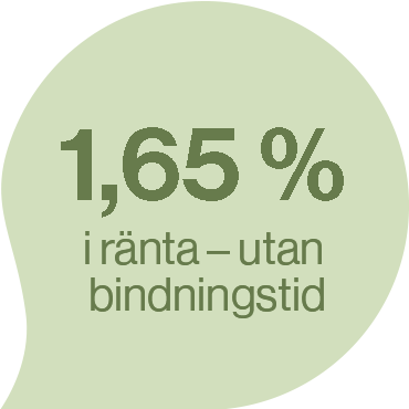 Sparkonto Trygghet har en rörlig ränta som för närvarande är på 1,65 %. Du får ränta från första kronan, och räntan betalas ut vid årsskiftet.